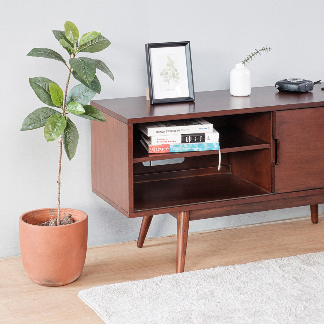Terbuat dari kayu mahoni solid, Fendi Kabinet TV memiliki konstruksi yang kokoh dan stabil. Material kayu solid memberikan daya tahan tinggi serta memastikan kabinet tidak mudah rusak untuk penggunaan jangka panjang. Desainnya yang minimalis membuat kabinet TV ini mudah dipadukan dengan berbagai gaya furnitur lainnya.